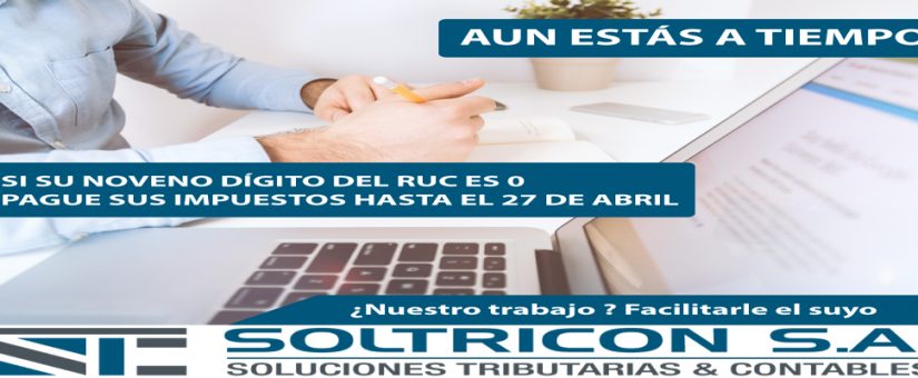 CONTRIBUYENTES CON NOVENO DÍGITO DEL RUC CERO DEBEN DECLARAR IMPUESTOS HASTA 27 DE ABRIL